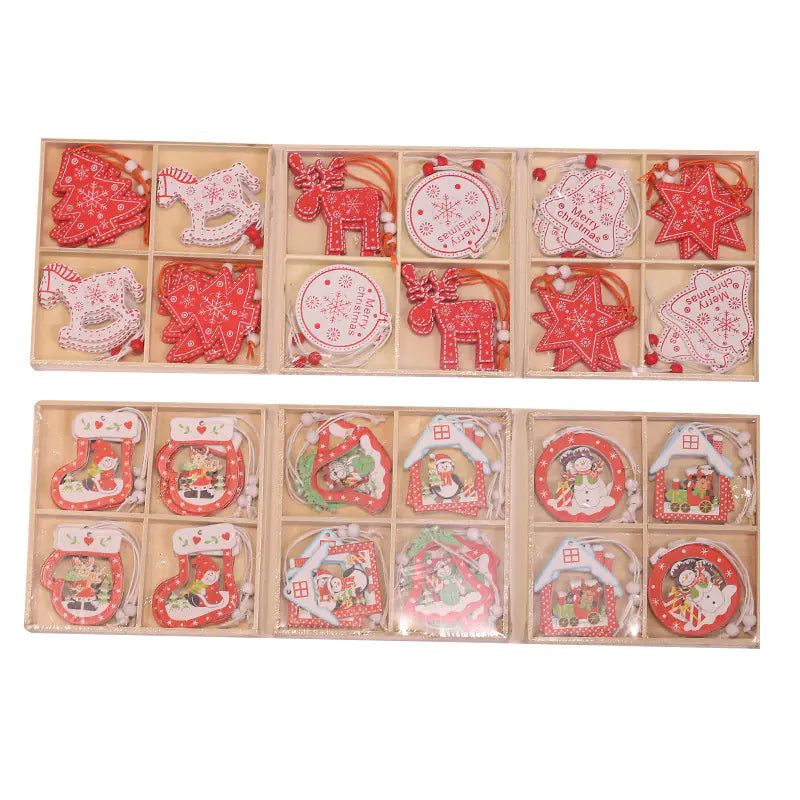 Creative Colorful Wooden Christmas Tree Ornaments Set